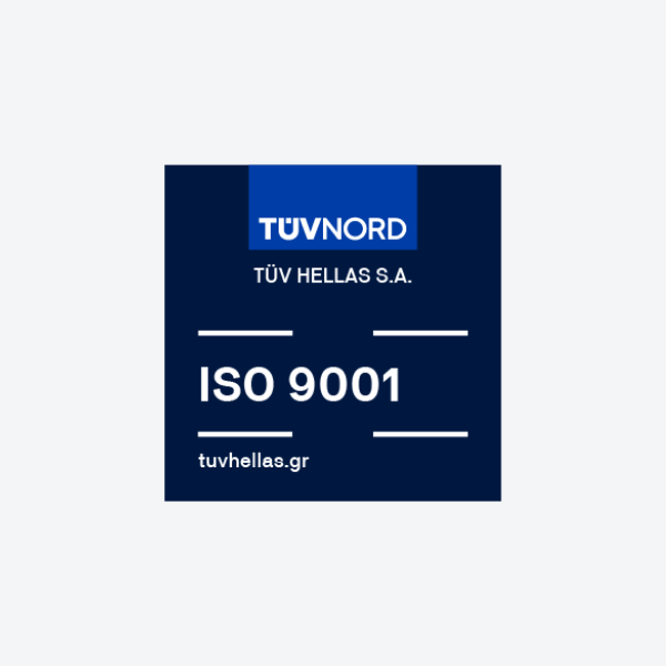 Η πιστοποίηση της εταιρείας έχει πραγματοποιηθεί από τον Οργανισμό Επιθεώρησης και Πιστοποίησης TÜV HELLAS (TÜV NORD).